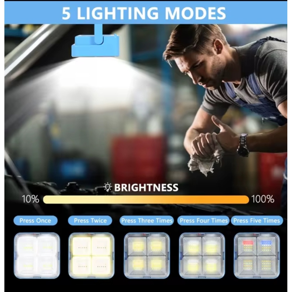 The Solar + Rechargeable Camping Flood Light is the ultimate companion for your outdoor adventures and emergency needs. With its sturdy construction, versatile charging options, and multiple lighting modes, this light is designed to provide reliable illumination when and where you need it most.