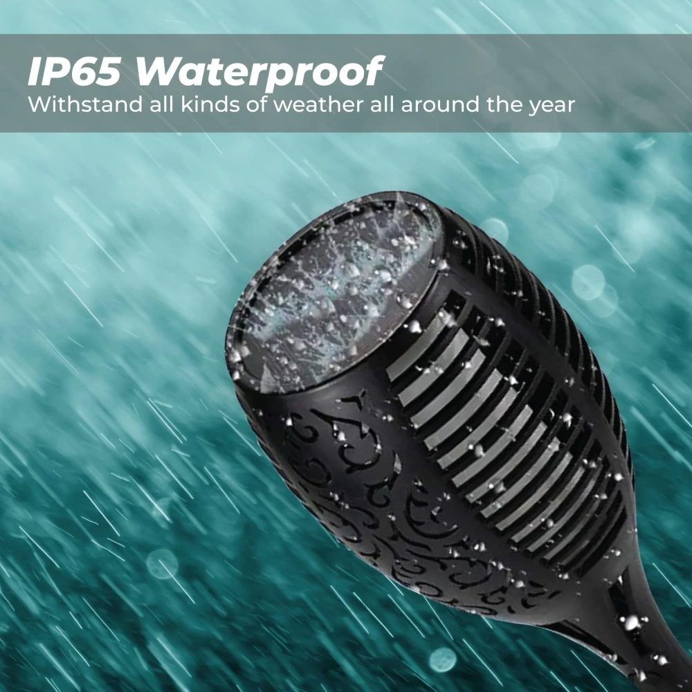 This solar torch features a vivid flickering flame effect that mimics real fire, creating a warm and captivating ambiance. Perfect for garden parties, camping, barbecues, weddings, Christmas, Halloween, and other outdoor celebrations.