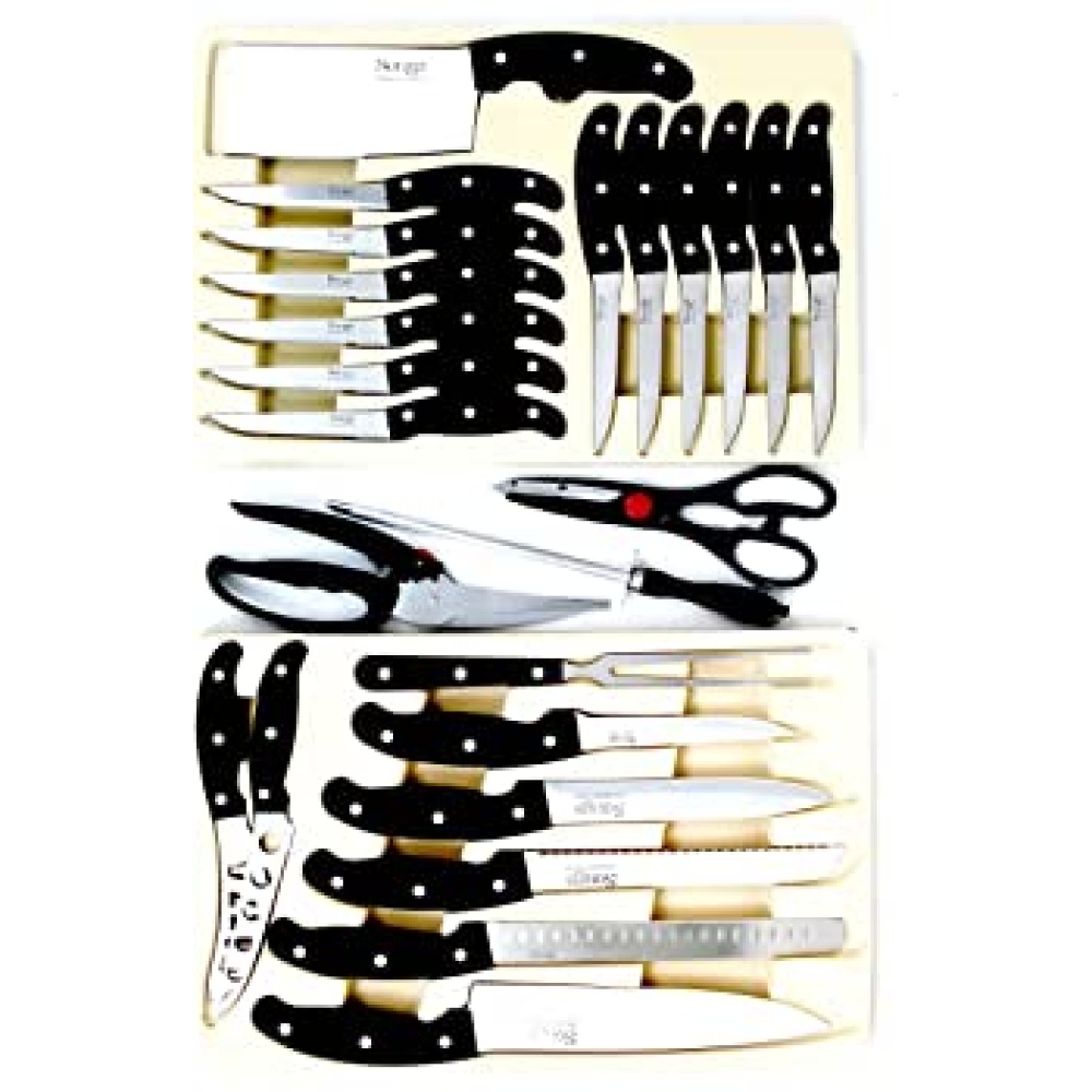 Set includes scissors, sharpener, carving tools, and serving utensils.