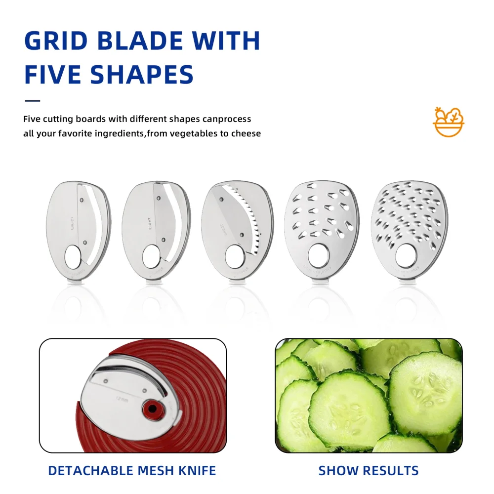 Functions: 5-in-1 (Slice, Shred, Grate)