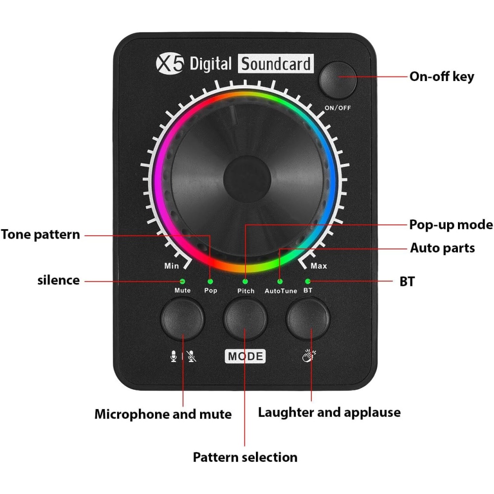Featuring customizable sound effects, the sound card offers real-time audio adjustments for your streams, podcasts, or recordings. Whether you need to add reverb, adjust bass levels, or apply effects, you can easily control and modify your audio output on the fly.