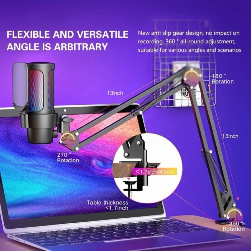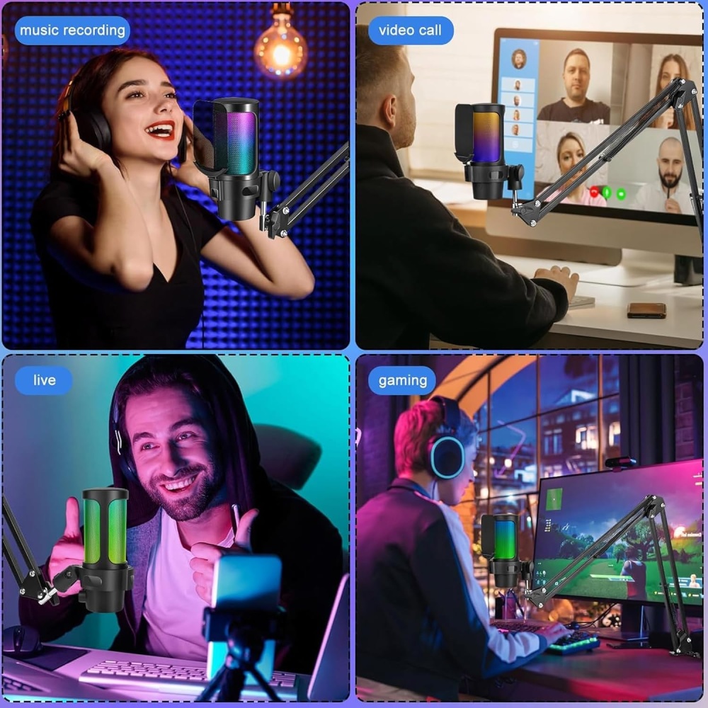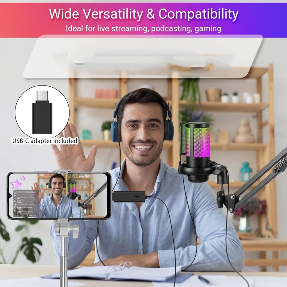 The microphone features vibrant RGB lighting that can be customized to fit your gaming setup, adding an eye-catching touch to your desktop, PS4, PS5, Android, or Mac setup.