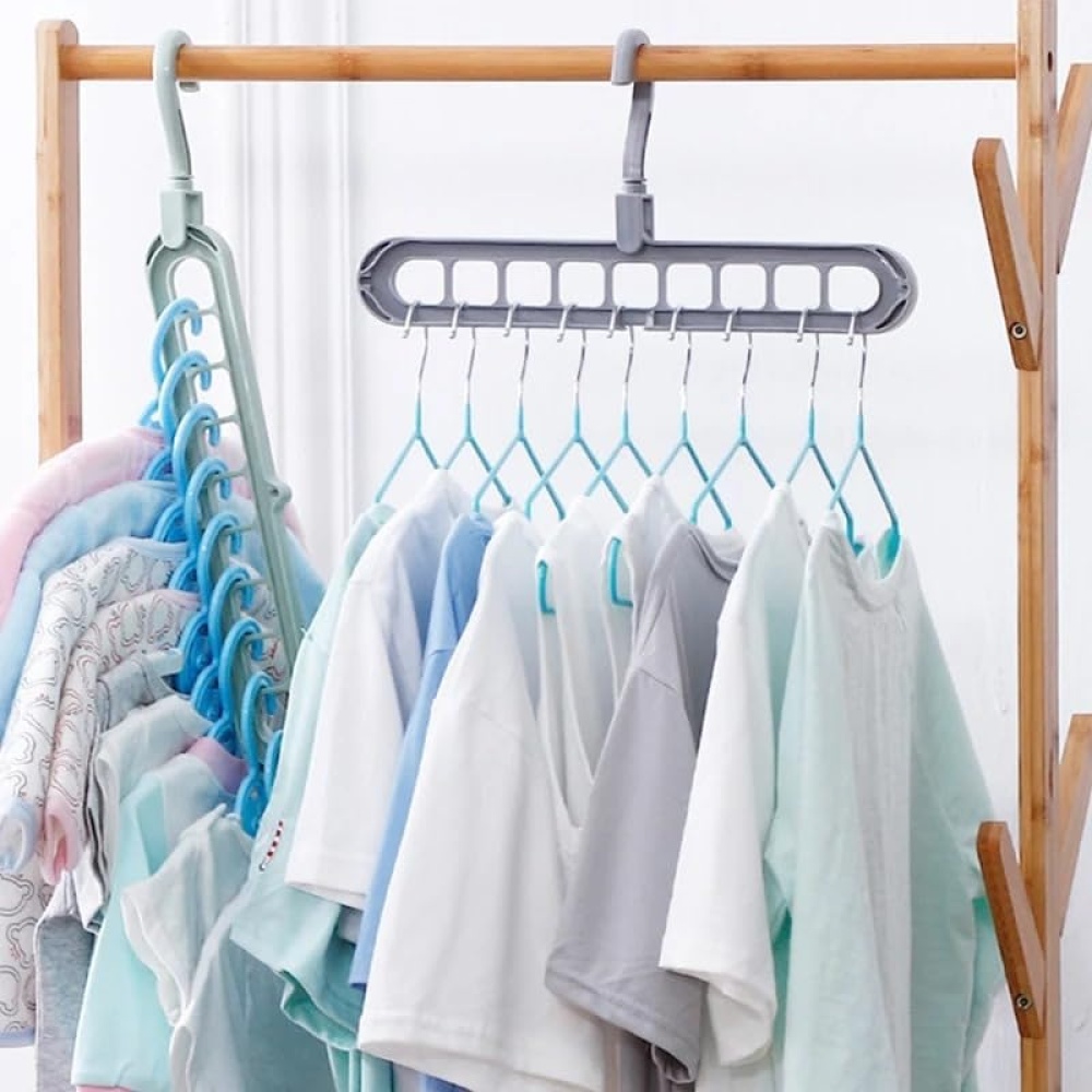 Each hanger holds up to 9 garments, and one set holds as many as 90 garments.