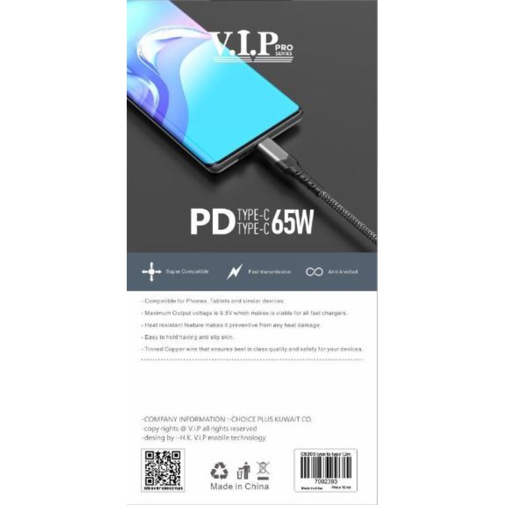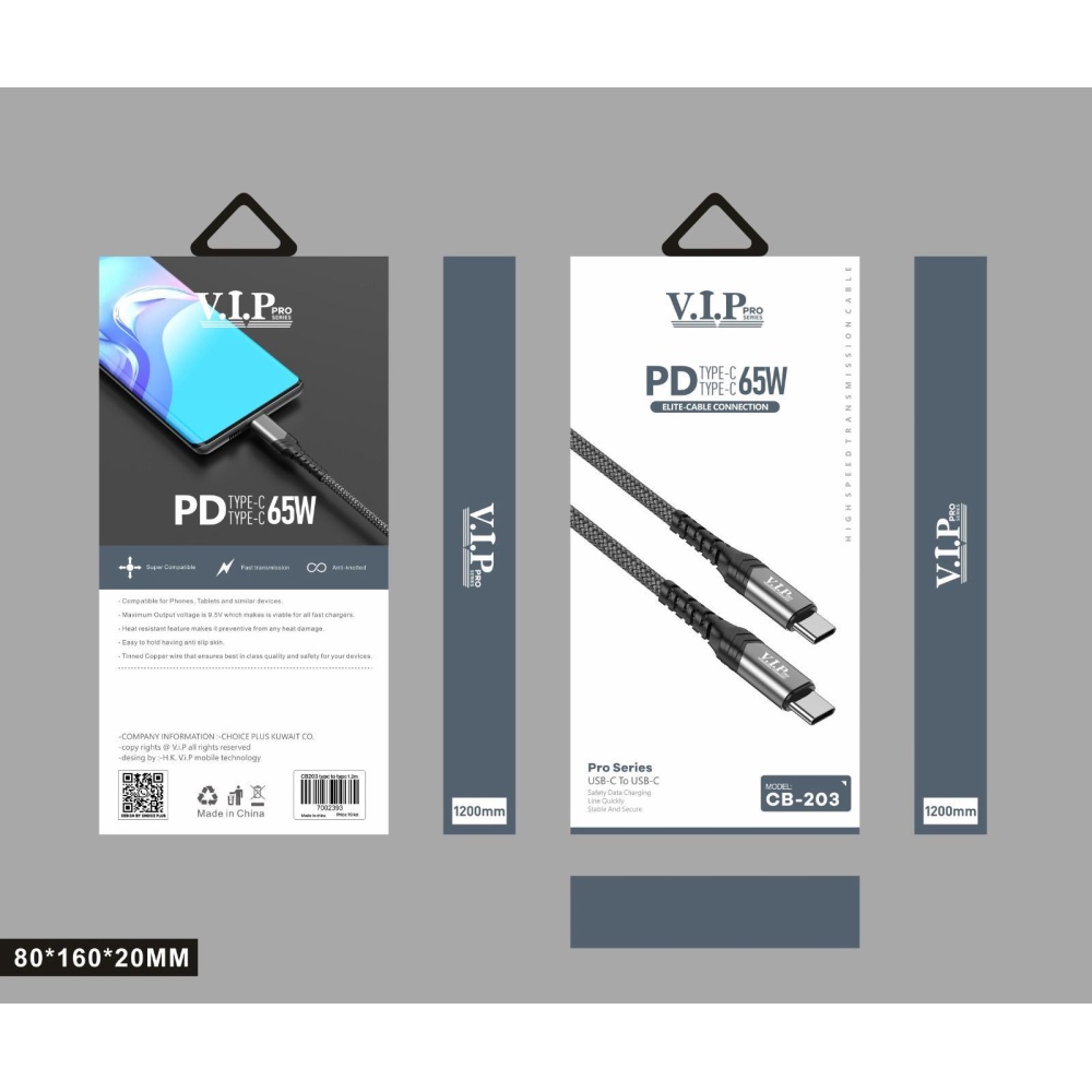 VIP CB-203 Pro Series Type-C to Type-C Cable – 65W Fast Charging | 1.2 Meters