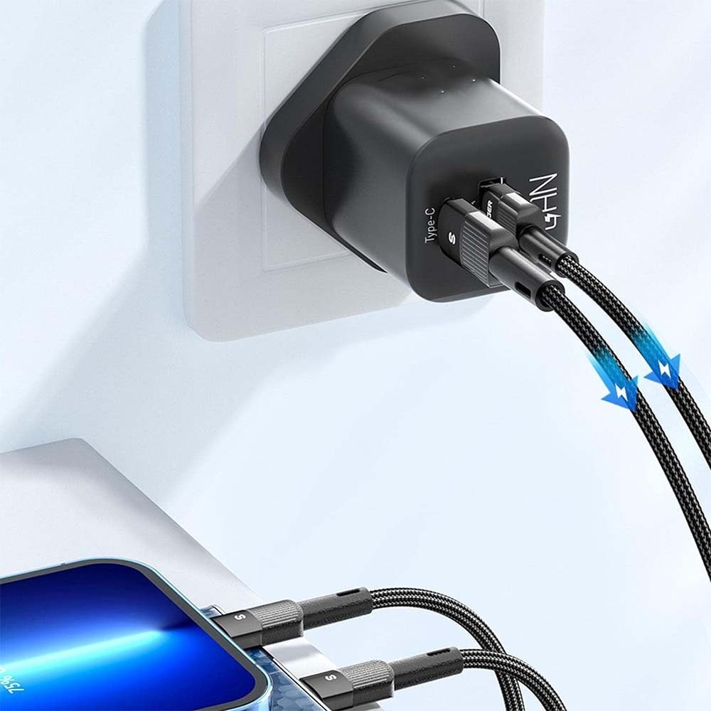 • Smartphone Charger with 2 Ports: Equipped with a 38W PD power supply port and a 3.0 rapid charger USB-A rapid charging port, so you can charge 2 devices at the same time and use a rapid charger plug