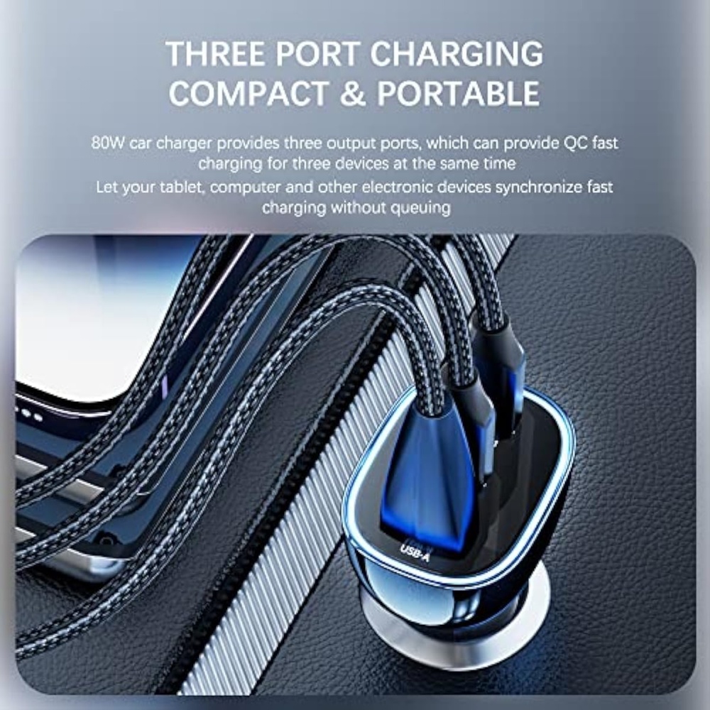 Equipped with 2 USB-C ports (20W each) and 1 USB-A port (30W max), this adapter allows you to charge three devices simultaneously. Great for families or shared rides—no more fighting over the charger!