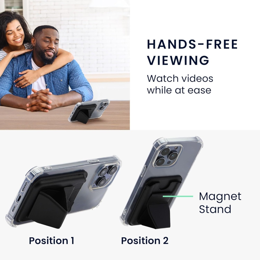 Discover the perfect blend of functionality and convenience with our slim MagSafe-compatible wallet. This sleek accessory not only serves as a wallet but also doubles as a phone stand, offering you a versatile and hands-free experience. Its foldable design allows you to effortlessly switch between stand and wallet modes, making it the ultimate companion for your phone.