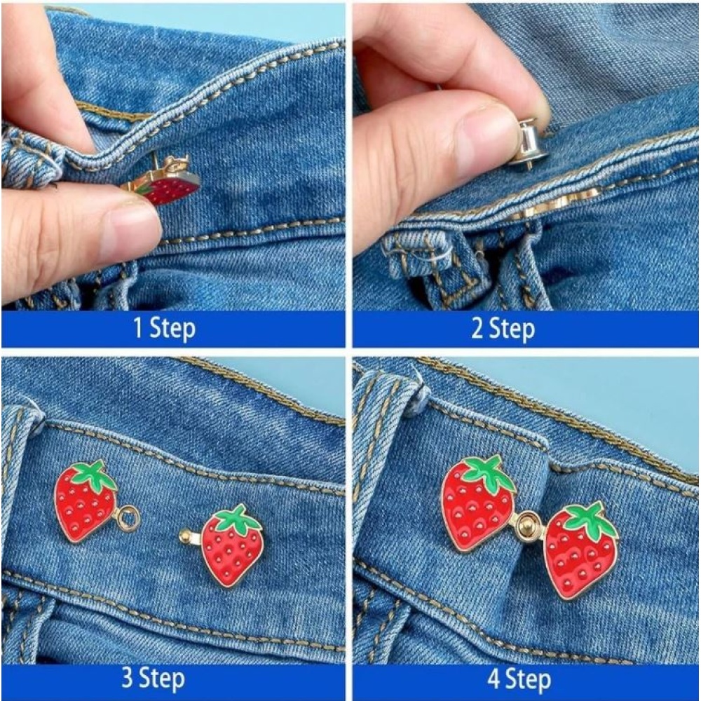 Add a touch of charm and functionality to your outfit with this adorable strawberry-shaped waist adjust button. Designed for convenience and style, it's the perfect no-sew solution for quick clothing adjustments!