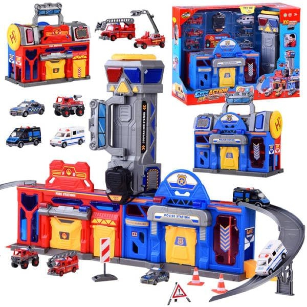Racing-Themed Playset for Young Boys: This toy set features a cool racing car theme, complete with detailed designs and realistic features. The playset includes a working elevator, garage doors, ramps, and a complete racing environment, offering endless fun while simulating the racing process, including car maintenance and cleaning. Perfect for 3, 4, 5, and 6-year-old boys.