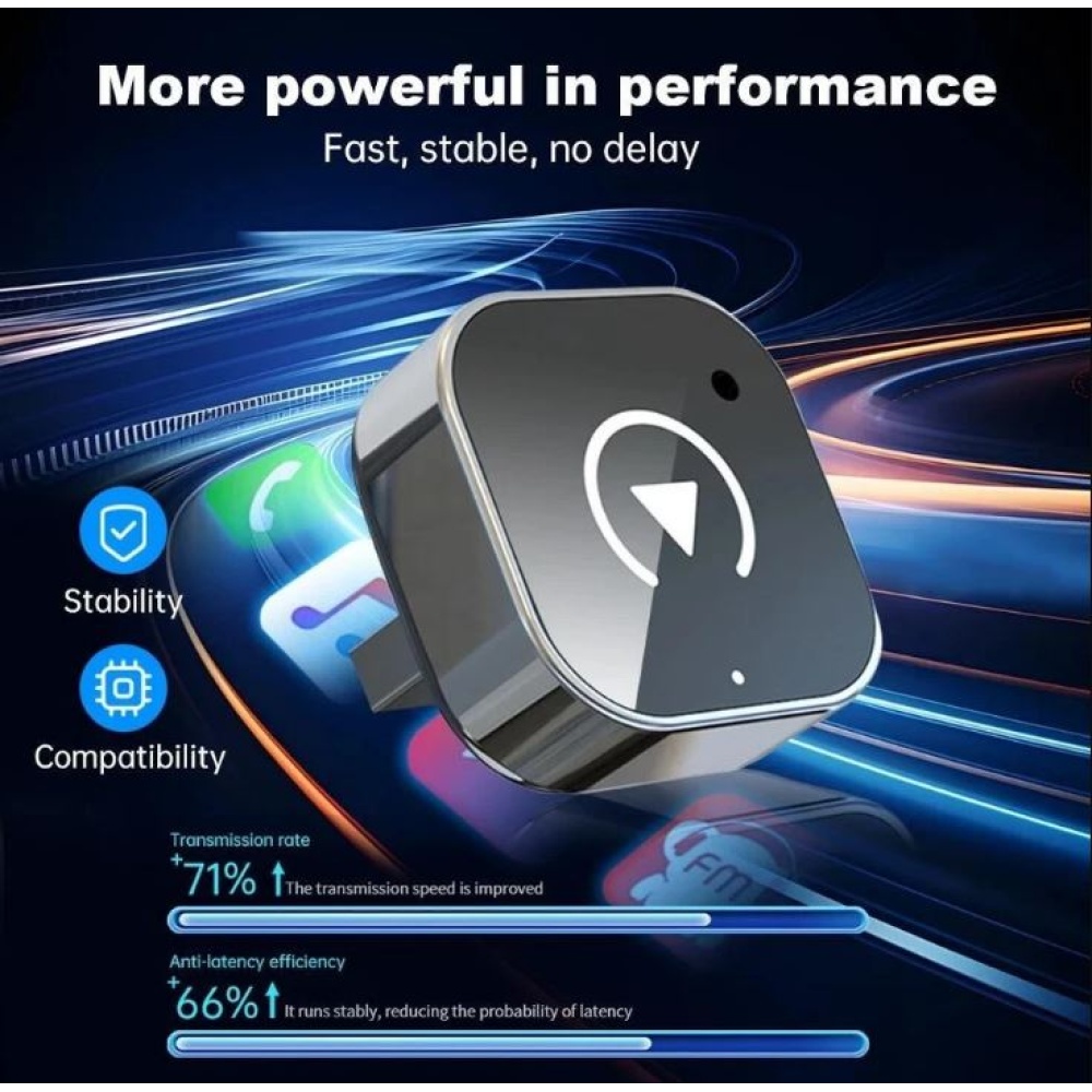 This compact, plug-and-play device converts your factory-wired CarPlay or Android Auto system into a fully wireless setup, giving you instant access to smart features like voice control, GPS navigation, and hands-free calling — all without tangled cables.