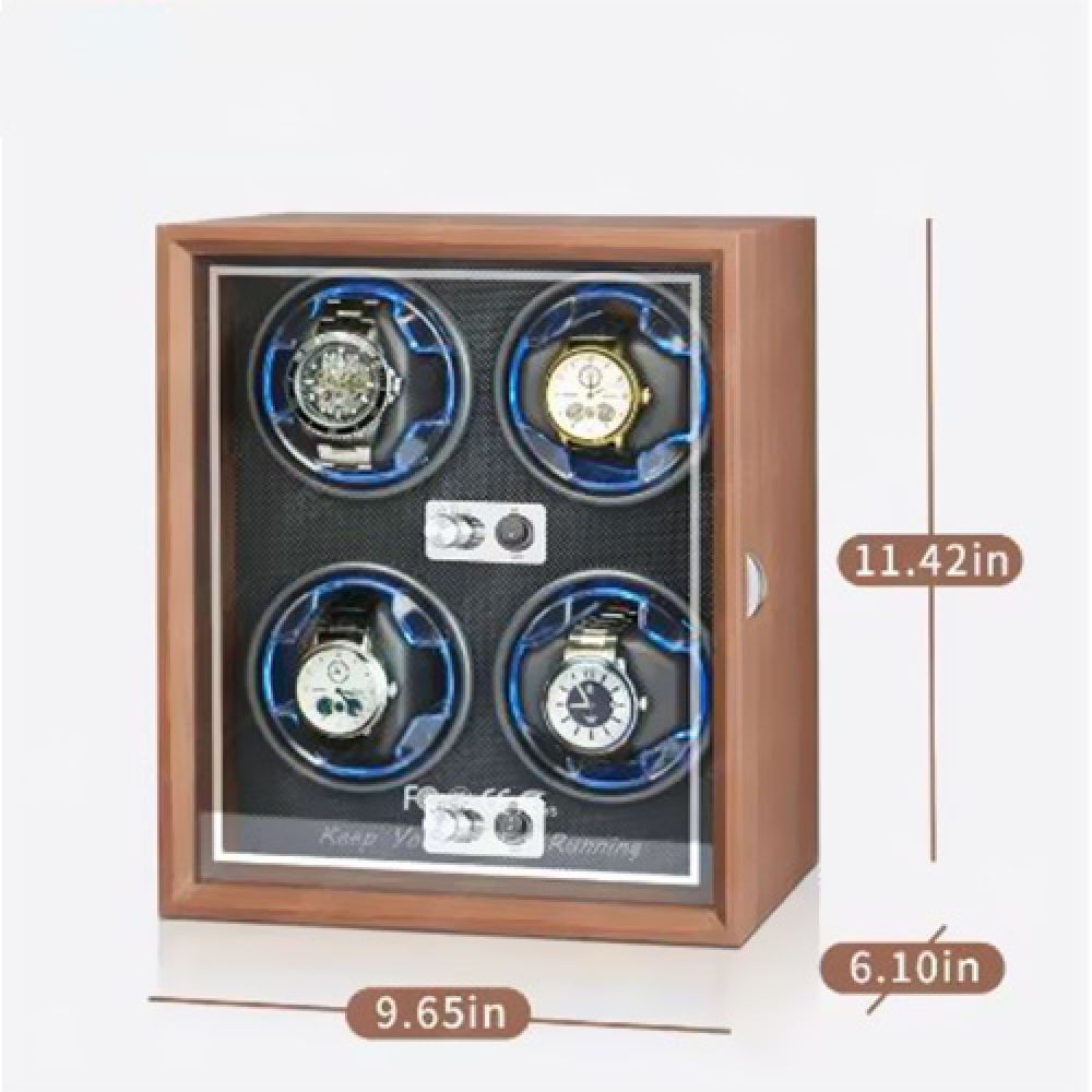 The watch winder has a 4-slot capacity, offering ample storage for multiple watches. Keep your luxury watches safe, secure, and wound properly when not in use.