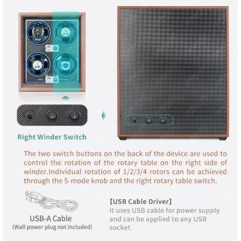 With a wide voltage range (3V-9V, 1A-5A), this watch winder is designed for use worldwide, ensuring compatibility with different electrical systems.