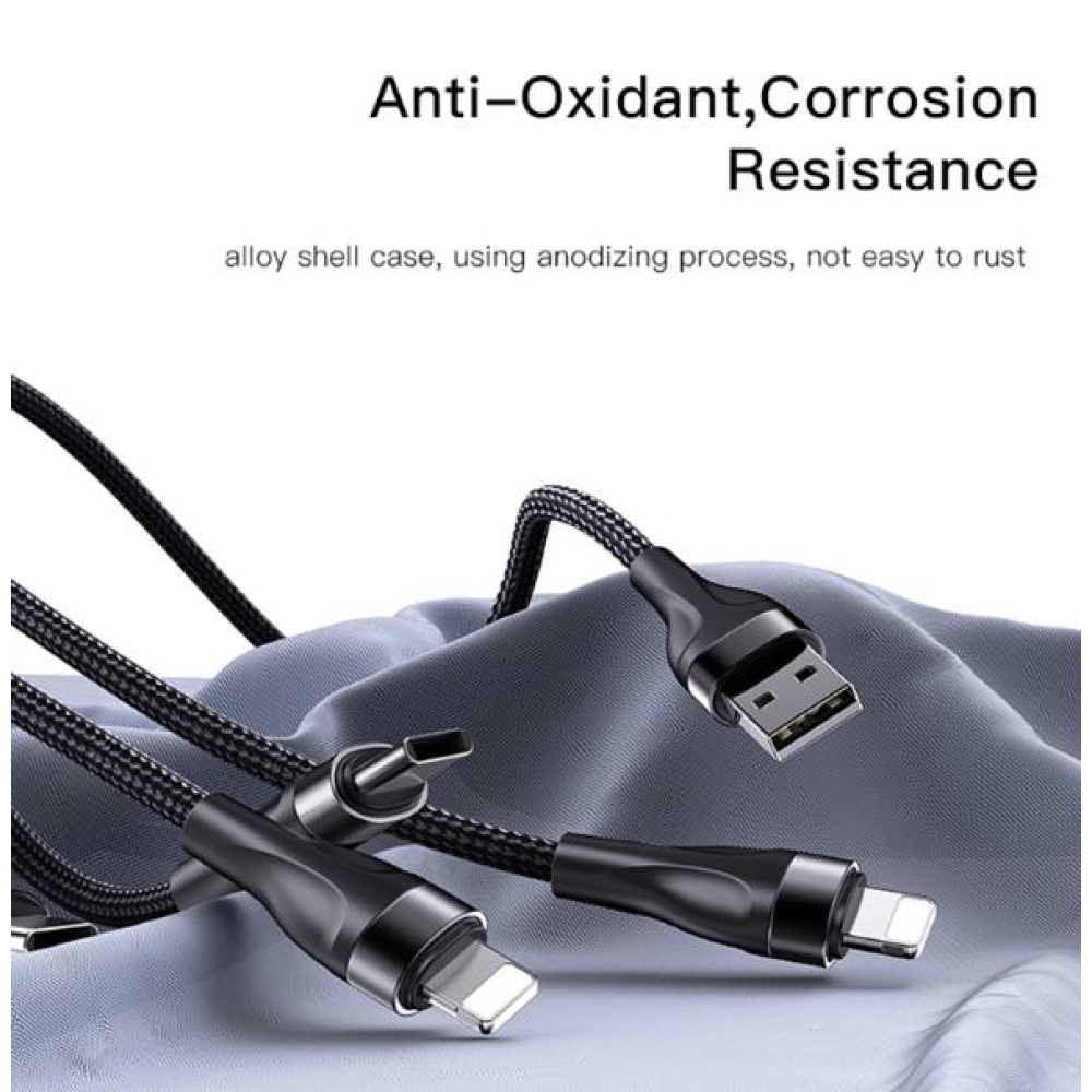 This cable comes with 2 Type-C and 2 Lightning connectors, making it compatible with a variety of devices, including most modern smartphones, tablets, and other tech gadgets.