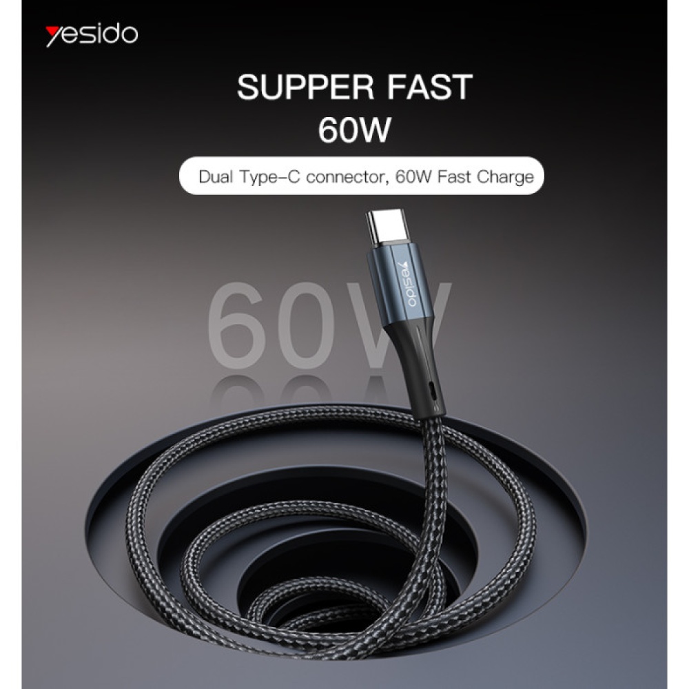 The Yesido CA96 is a high-performance Type-C to Type-C fast charging cable designed for powerful charging, stable data transfer, and long-lasting durability. With 60W fast charging support and reinforced nylon braiding, it is ideal for phones, tablets, laptops, and all modern Type-C devices.