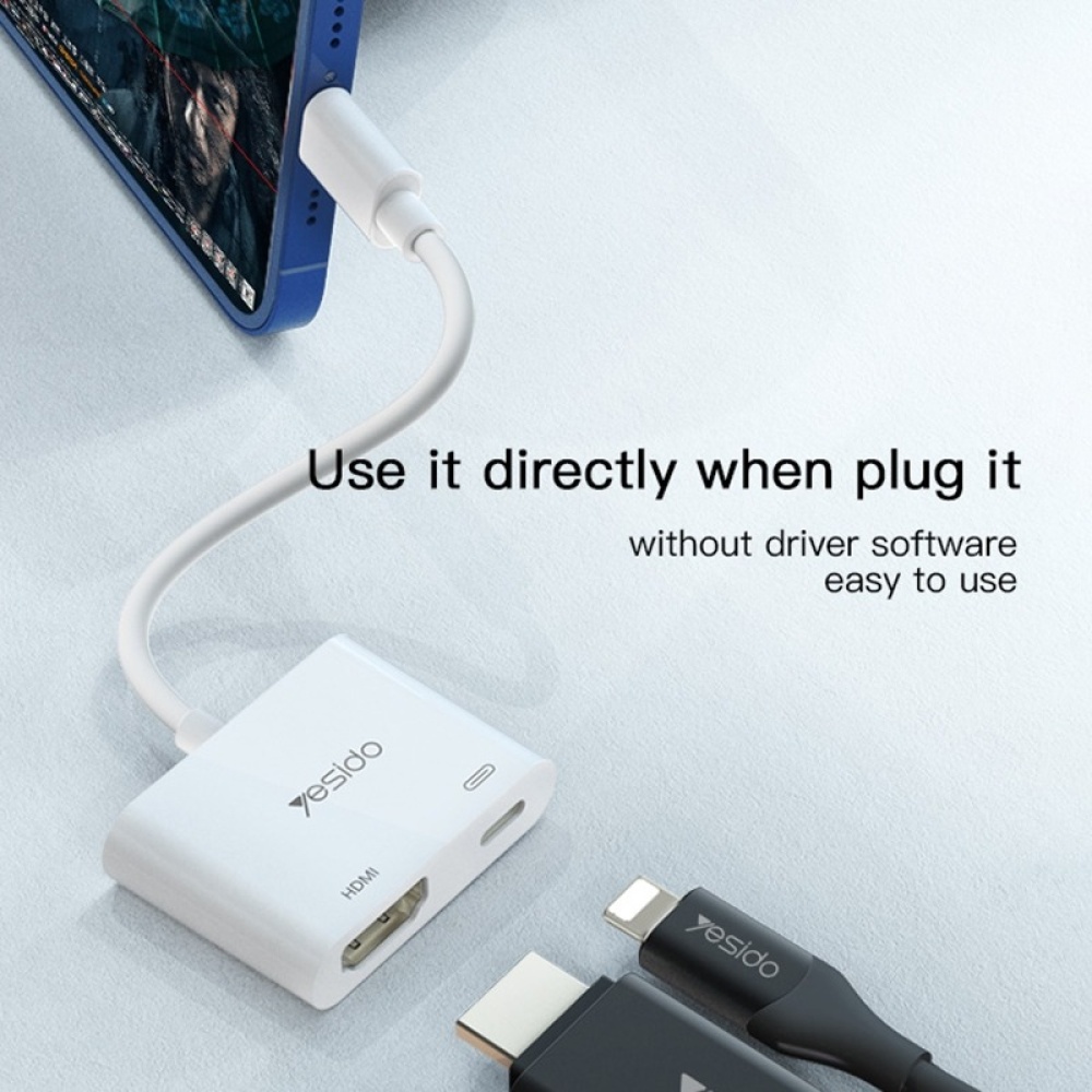 The Yesido HM06 8 Pin to HDMI Adapter provides excellent audio and video quality by converting your device’s 8 Pin output to HDMI. Enjoy high-definition video and crystal-clear audio from your iPhone, iPad, or other compatible devices, directly onto your TV or monitor.